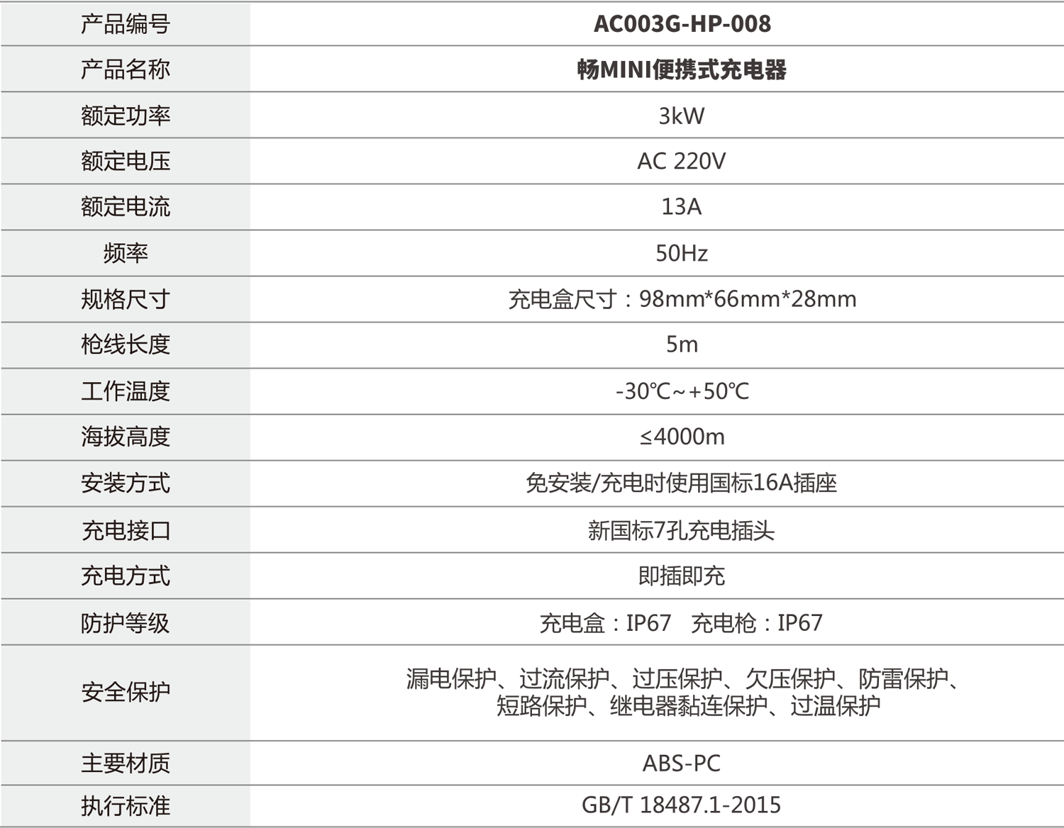 产品参数