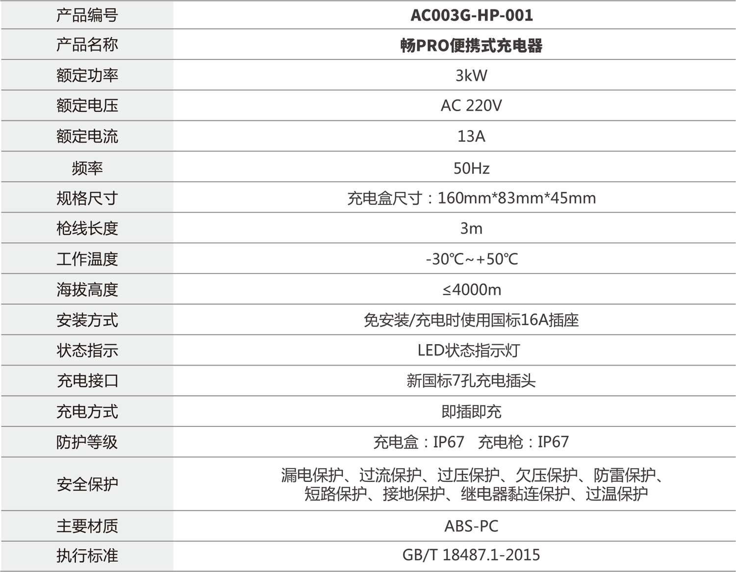 产品参数